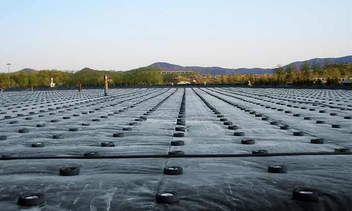 工程規(guī)模:HDPE土工膜鋪設(shè)、焊接、壓實共251,026㎡,錨固溝長度2,496.4m